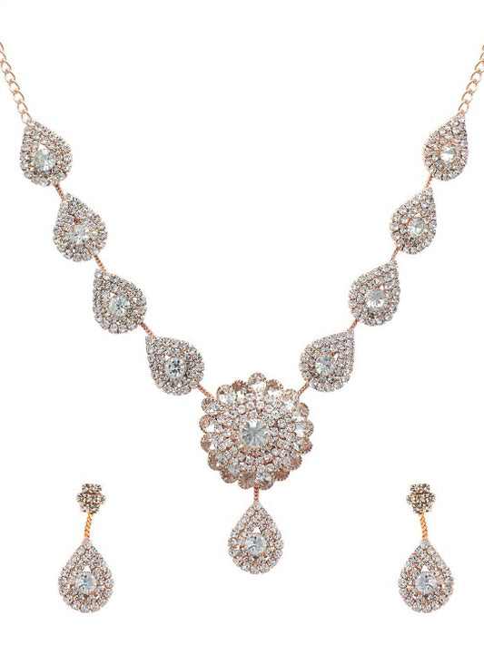Rose Gold-Plated CZ Studded Jewellery Set