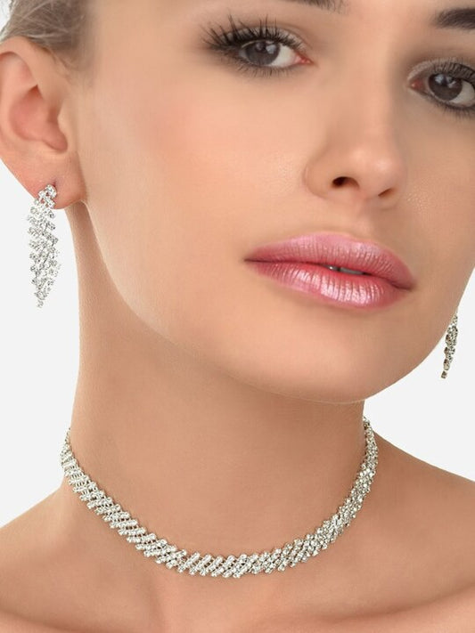 Silver Plated CZ-Studded Jewellery Set