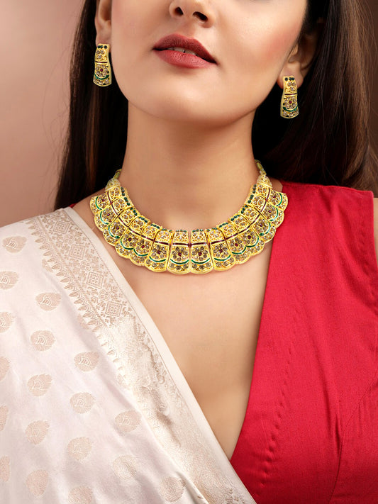 Gold-Plated Stones-Studded Rajwadi Jewellery Set