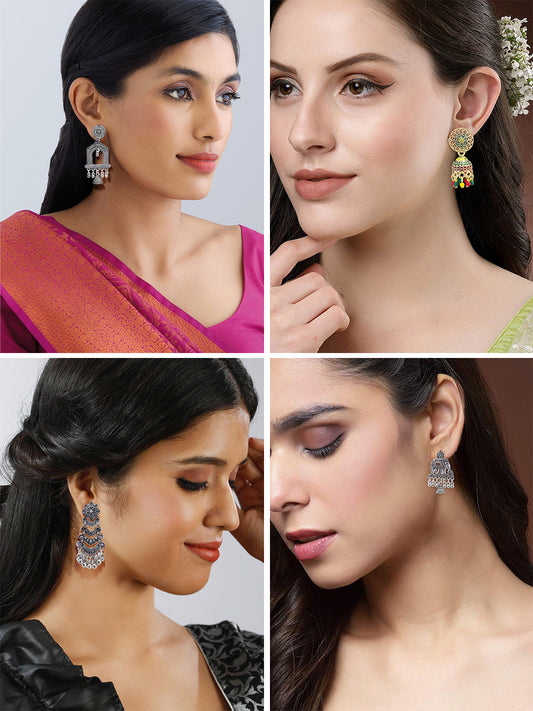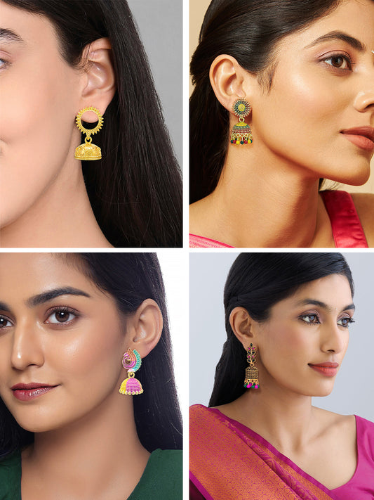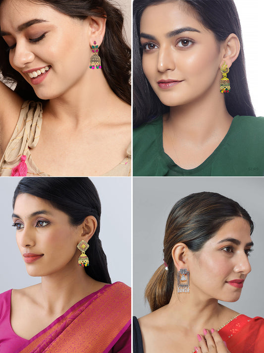 Pack of Six Multicolour Jhumki & Drop Earrings