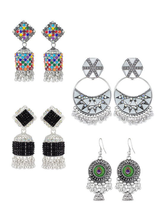 Pack of 4 Multicolor Rhinestone & Crystal Drop Earrings