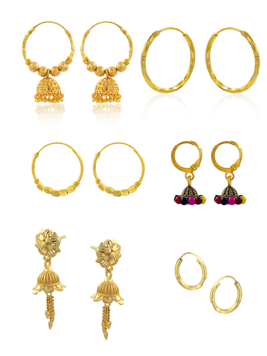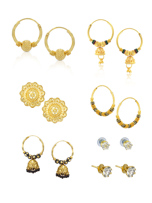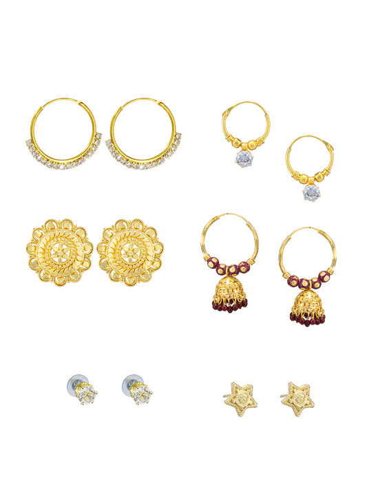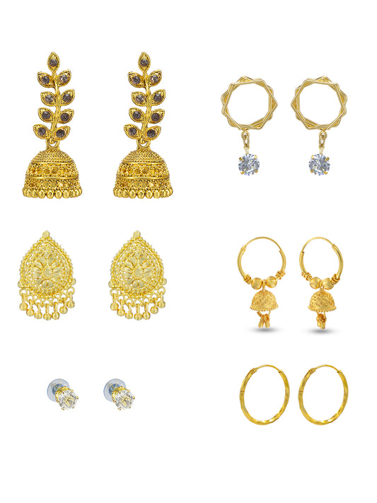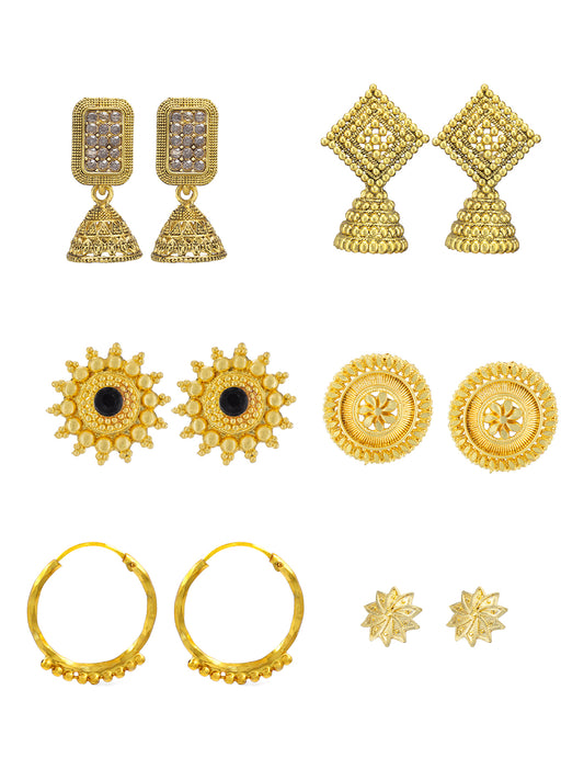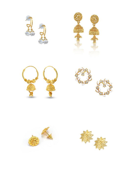 Pack of 6 Gold Plated Hoop, Jhumkas & Studs Earrings