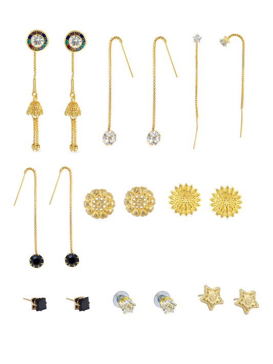 Pack of 9 Gold Plated Drop & Studs Earrings