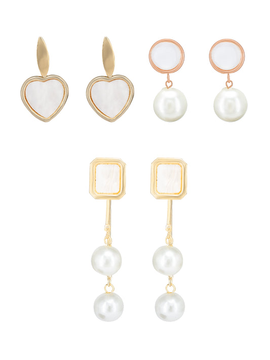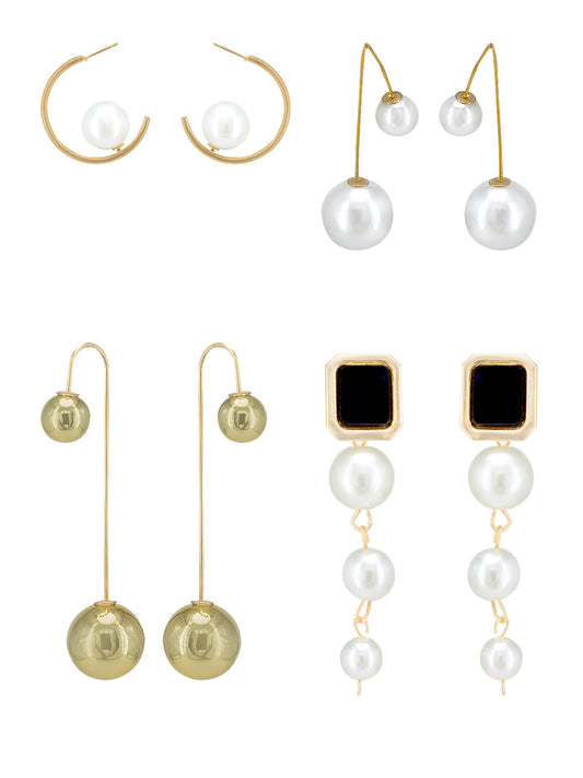 Pack of 4 Gold Plated Artificial Beads Drop Earrings