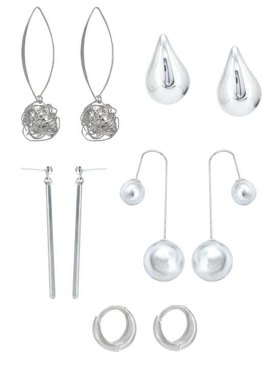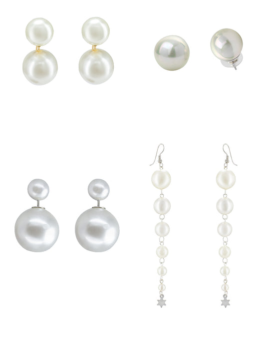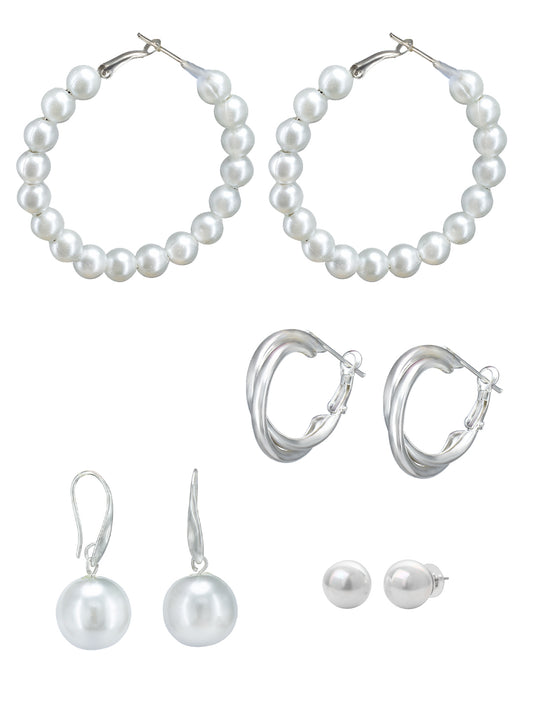 Pack of 4 Silver Plated Faux Pearl Studded Hoops & Studs Earrings