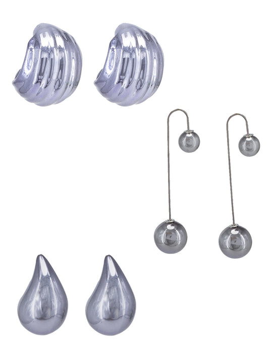 Pack of 3 Gun Metal Plated Studs & Drop Earrings