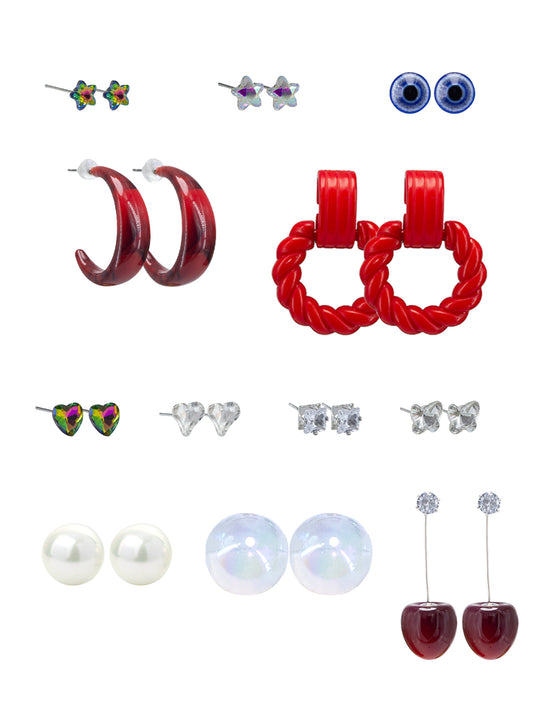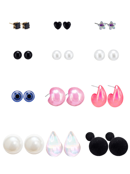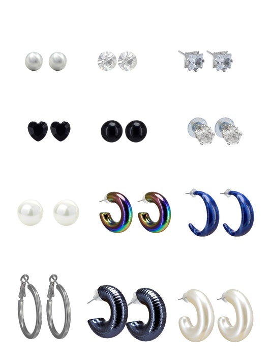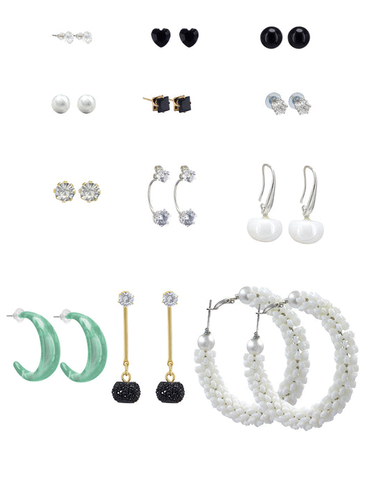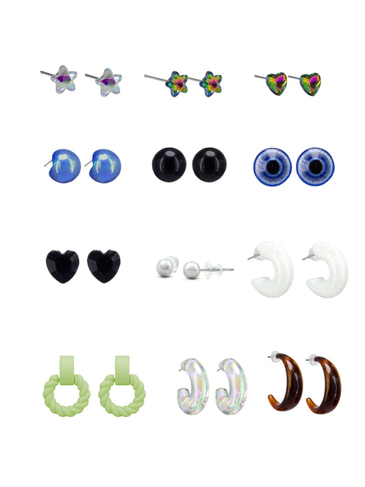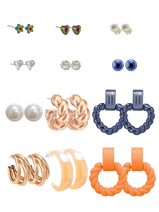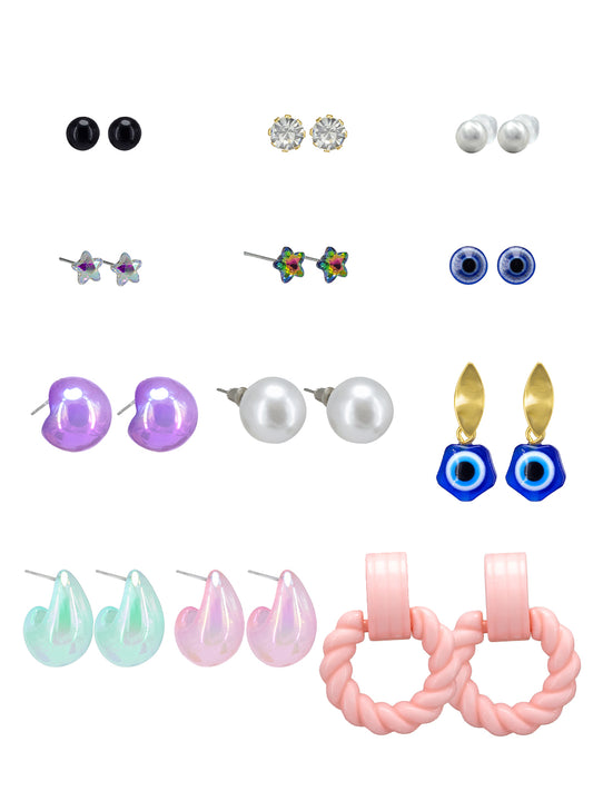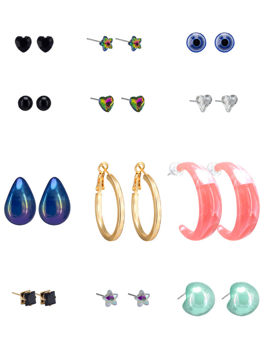 Pack of 12 Multi Color Drop, Hoop & Studs Earrings
