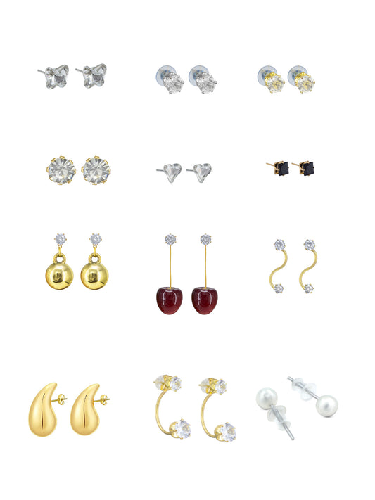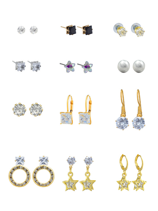 Pack of 12 Gold Plated Drop, Dangle & Studs Earrings