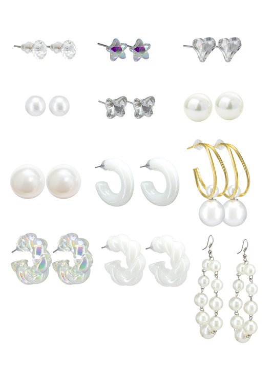 Pack of 12 Faux Pearls Drop, Dangle & Studs Earrings