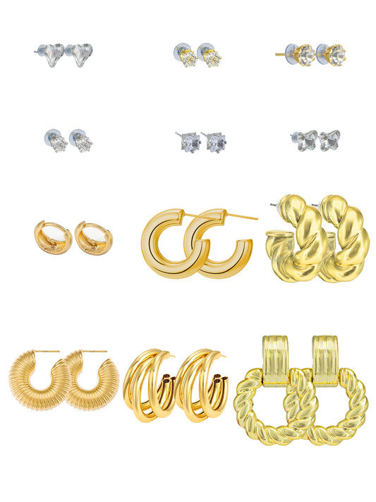 Pack of 12 Gold Plated Hoop, Dangle & Studs Earrings