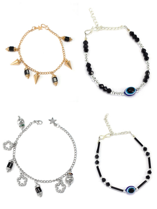 Pack of 4 Silver & Gold Plated Lucky Evil Eyes Charm Bracelets