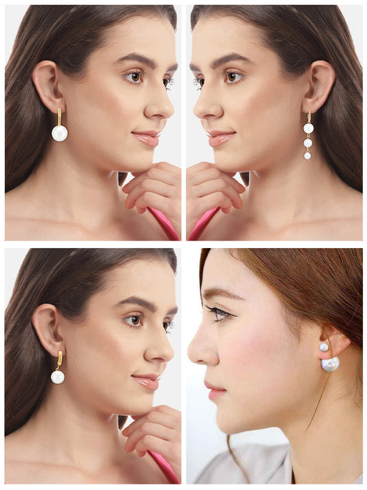 Pack of 4 Artificial Pearl Drop & Stud Earrings Gift For Girls