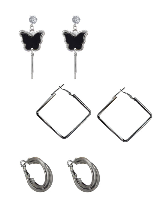 Pack of 4 Silver Plated Hoop & Drop Earrings