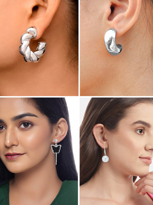Set of 4 Silver-Plated Quirky Half Hoop & Drop Earrings