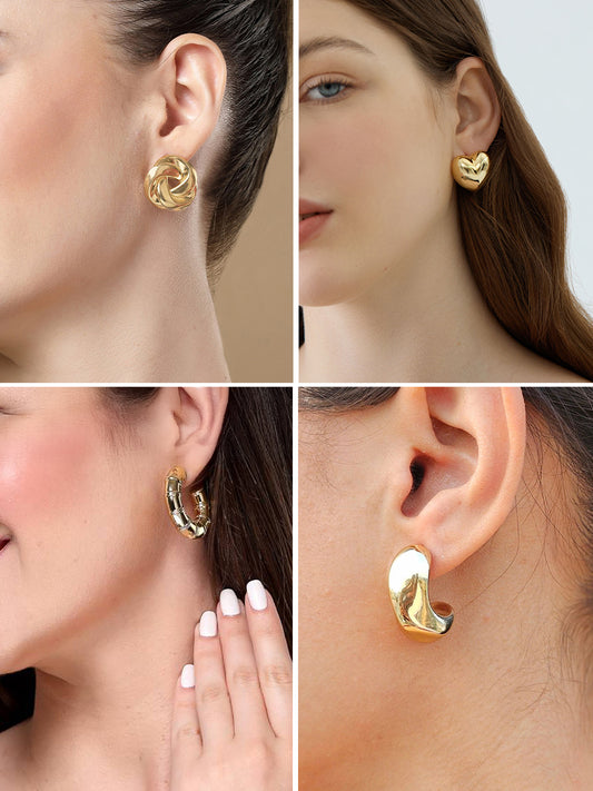 Set of 4 Gold-Plated Quirky Half Hoop & Studs Earrings