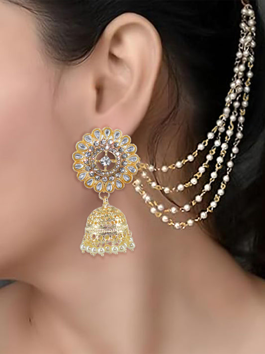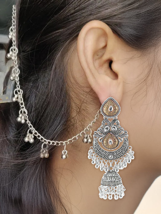 Dual-Tone Afghani Jhumka Earrings With Ear Chain
