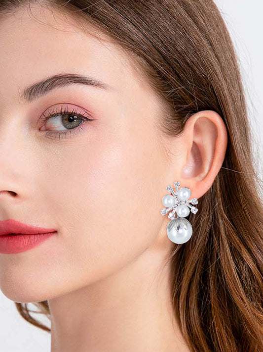Silver-Plated Floral Faux-Pearl Studded Drop Earrings