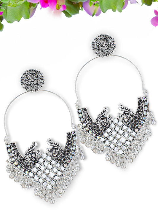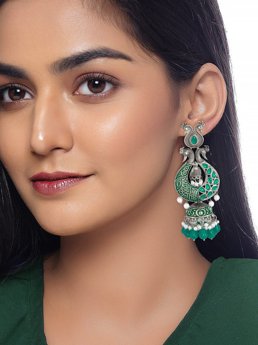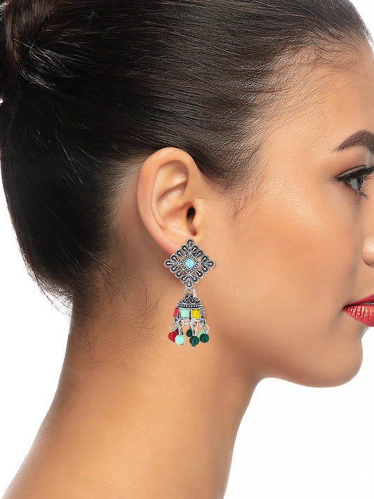 Oxidized Square Multicolor Beads Drop Jhumka Earrings