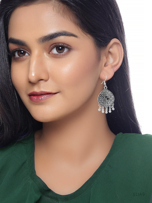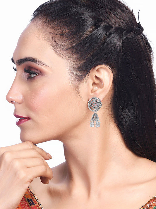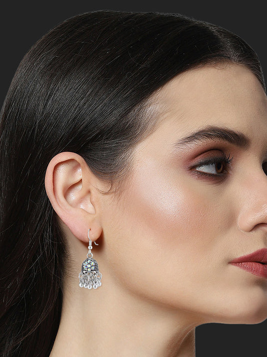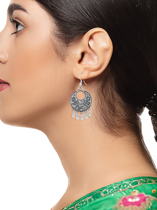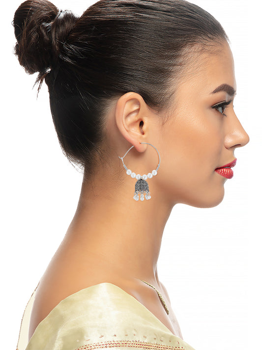 Oxidized Beads Drop Hoop Jhumka Earrings