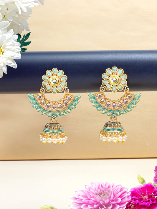 Gold Plated Artificial Stones & Beads Studded Drop Earrings