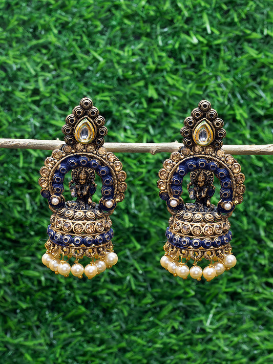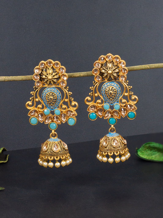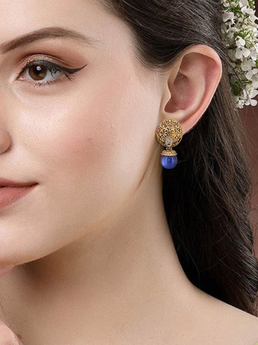 Gold Plated Artificial Stones & Beads Studded Drop Earrings