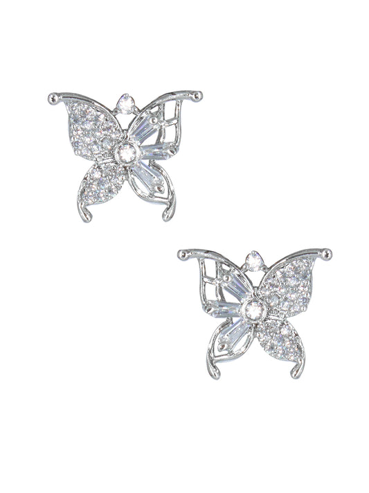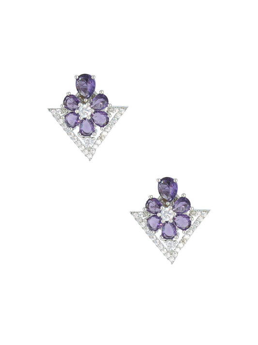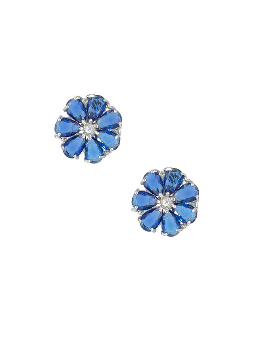 Silver Plated Blue Floral AD Stud Earrings For Women