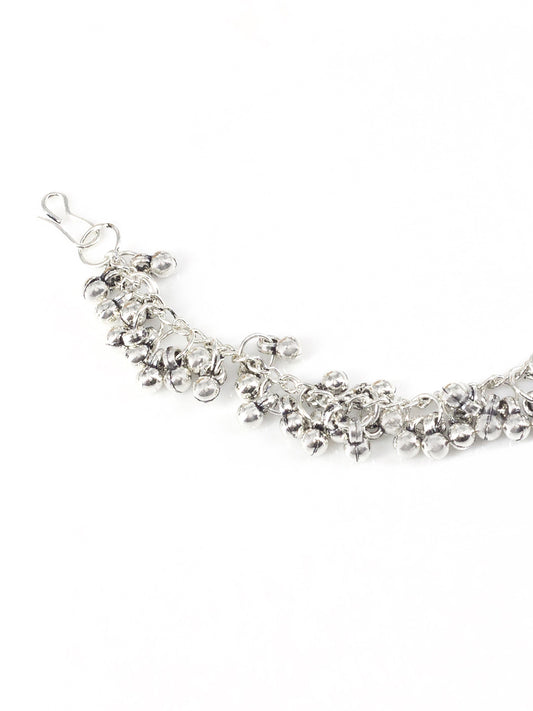 Silver-Oxidised Floral Jhumka Earrings With Hair Chain