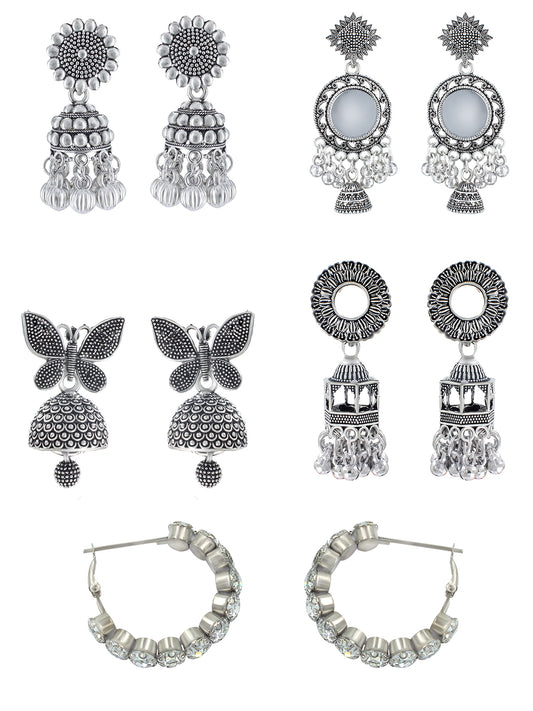 Pack of 5 Silver Oxidised Jhumki Earrings
