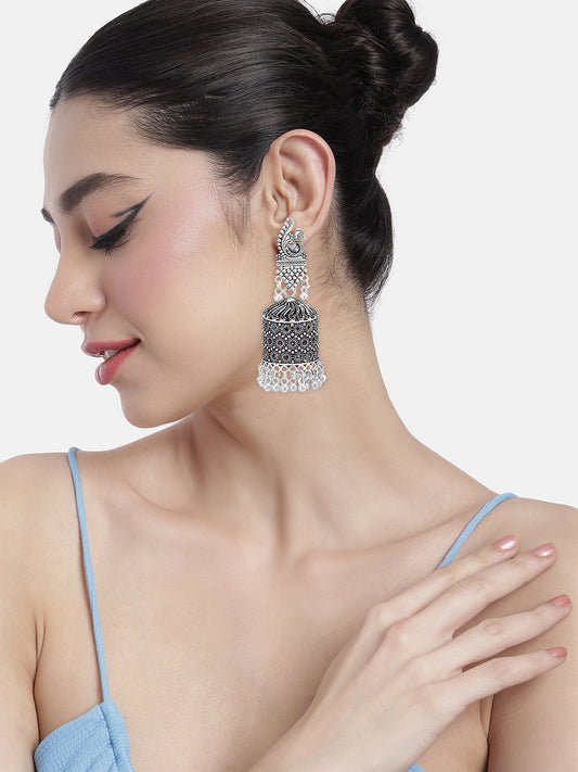 Silver Oxidised Peacock Jhumka Earrings