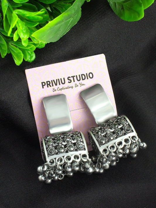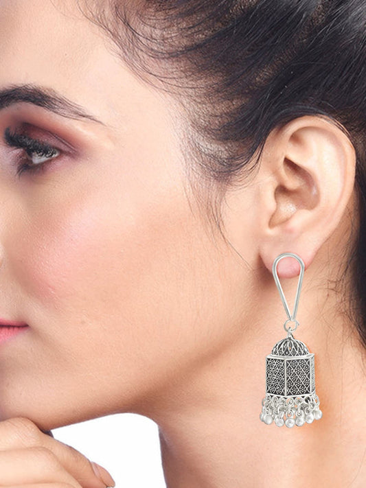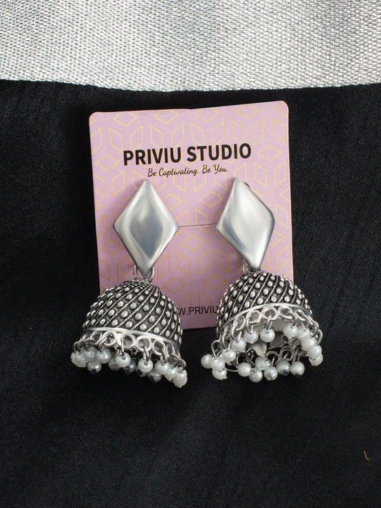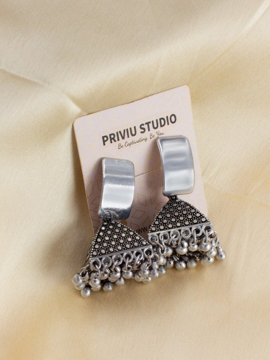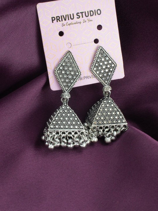 Silver Plated Classic Shaped Oxidised Jhumkas