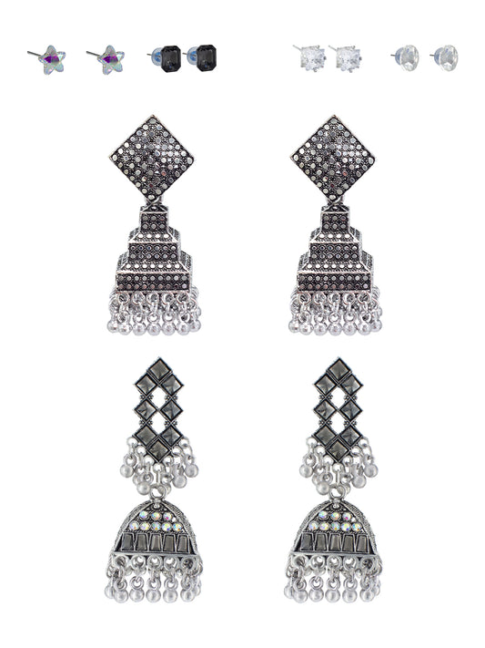 Pack of 6 Silver Oxidised Jhumka and Studs Earrings