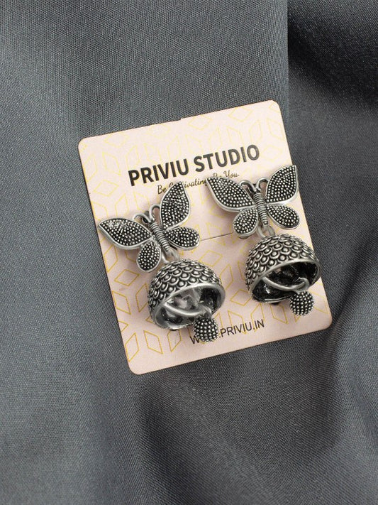 Silver Plated Butterfly Shaped Oxidised Jhumkas
