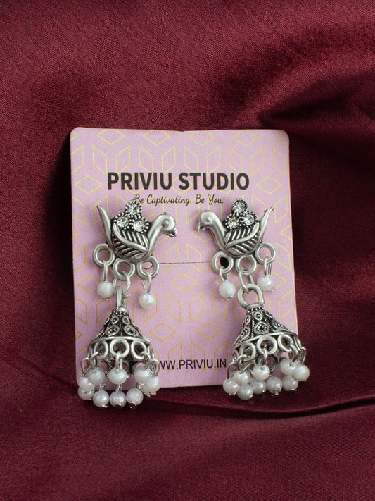 Silver-Plated Oxidised Peacock Shaped Jhumkas