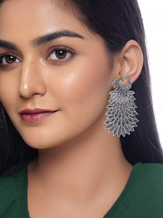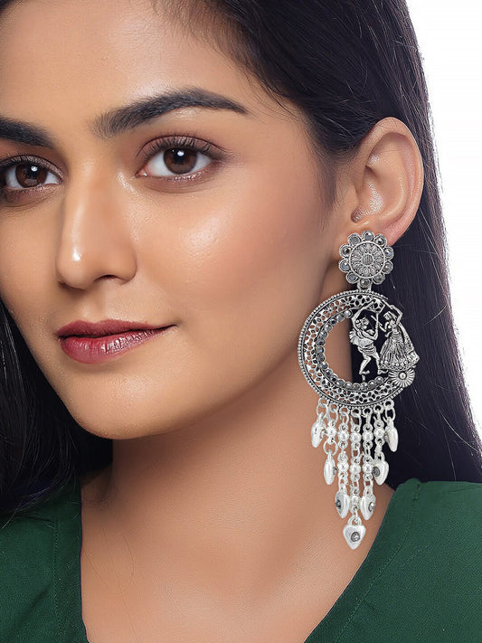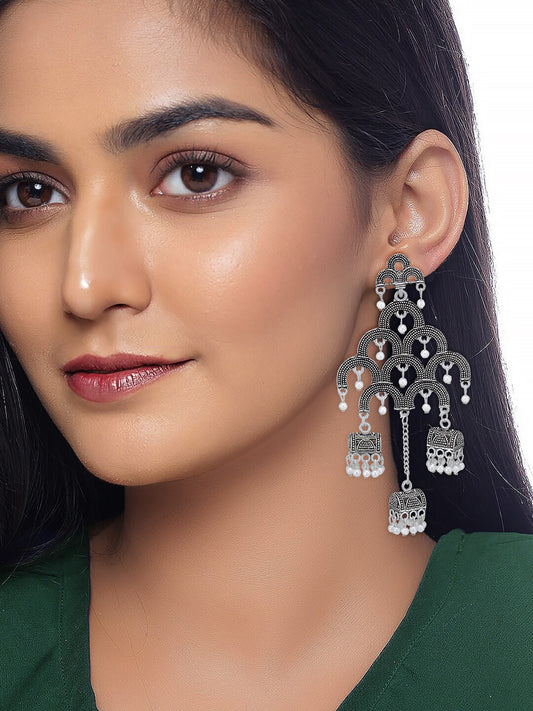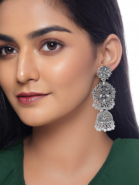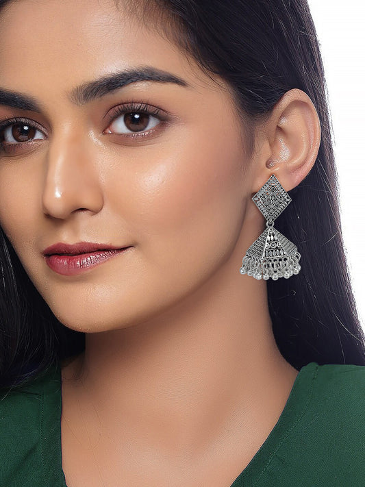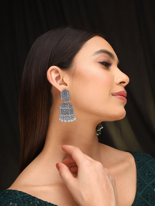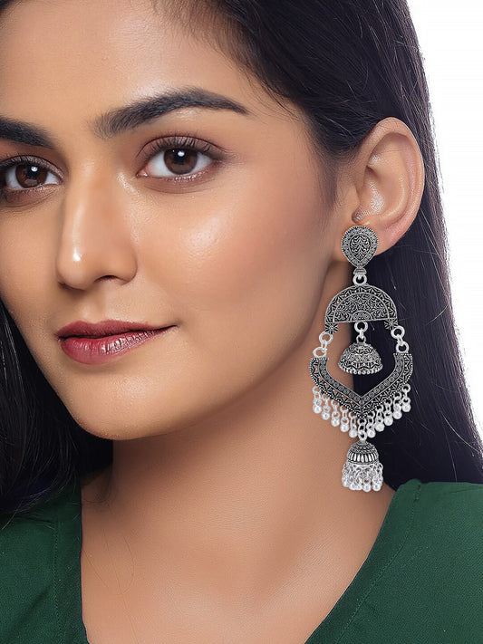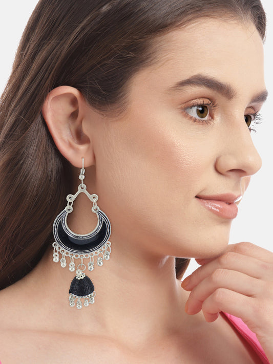 Silver Oxidised Black Chandbali Jhumka Earrings