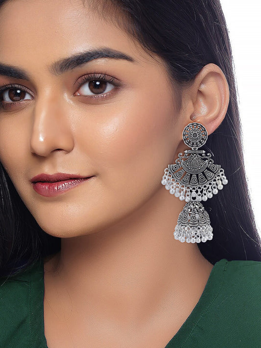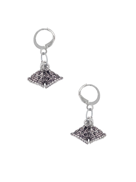 Silver Oxidised Hoop Jhumki Earrings For Women