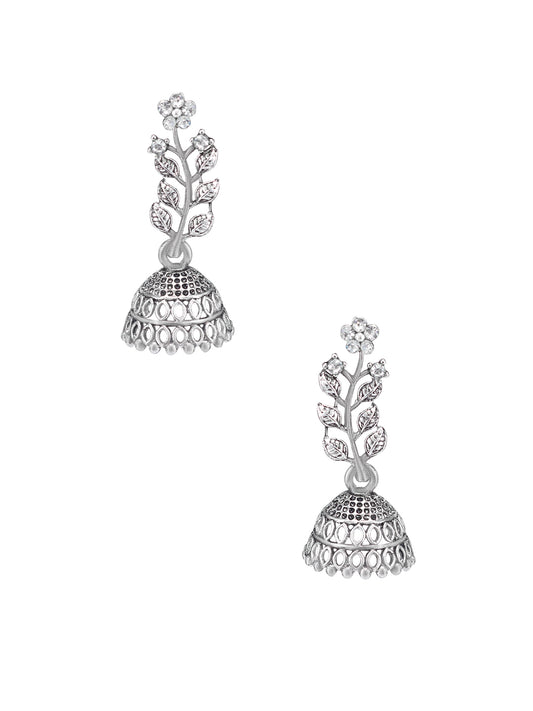 Silver Oxidised Floral & CZ Studded Jhumki Earrings