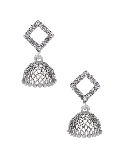 Silver Oxidised Square Shaped CZ Studded Jhumki Earrings