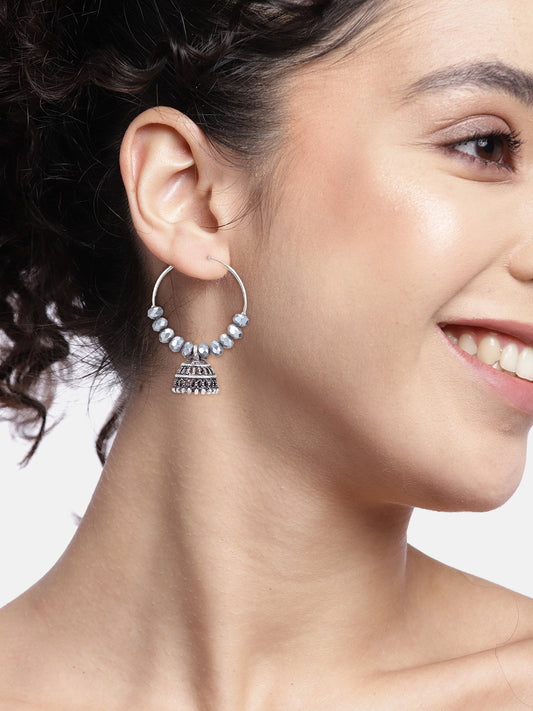 Silver Oxidised Gun Metal Plated Artificial Beaded Hoop Jhumki Earrings