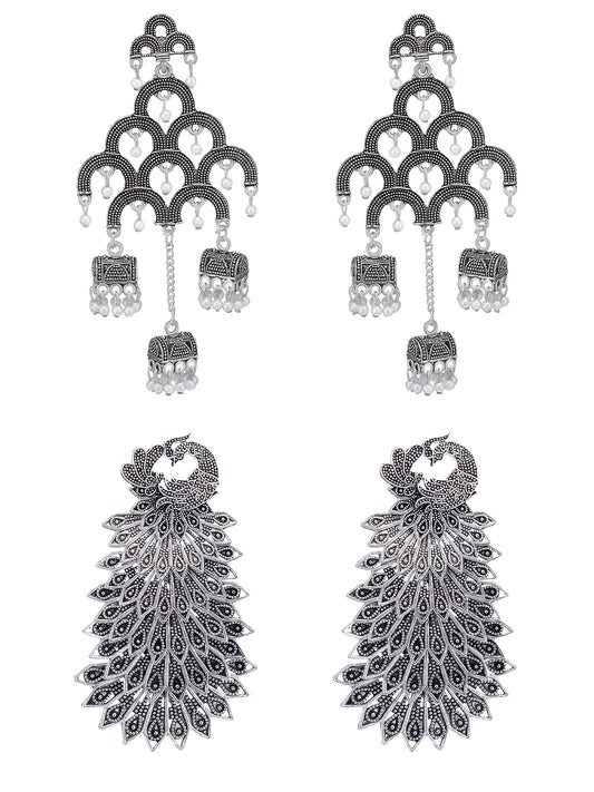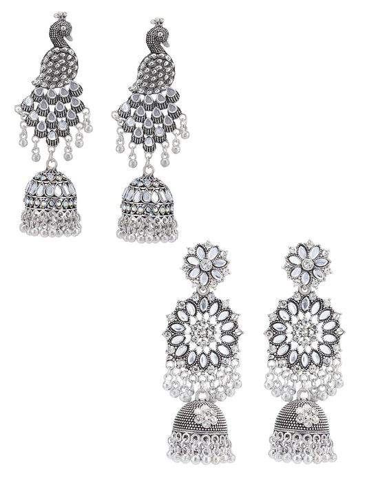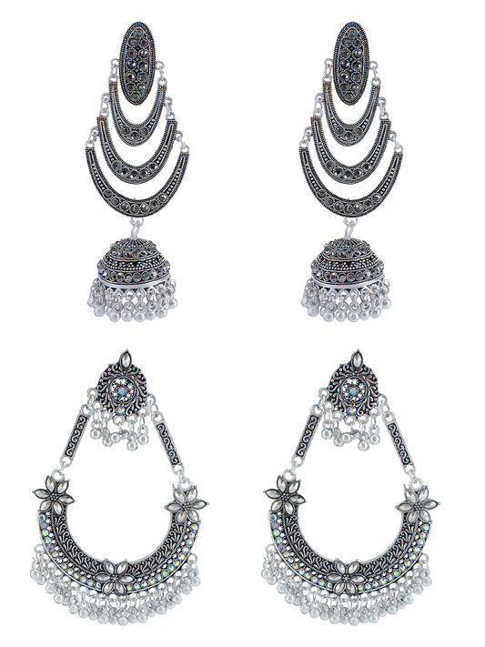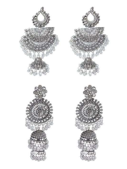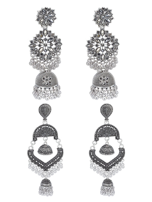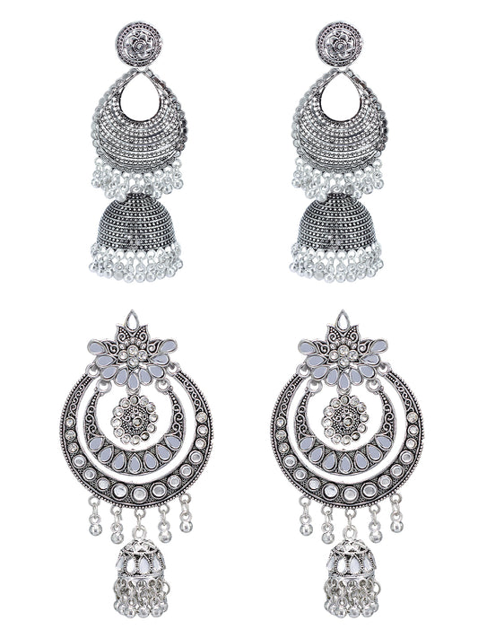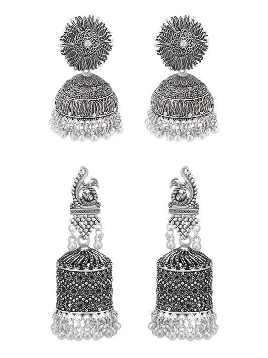 Pack of 2 Silver Oxidised Jhumka Earrings