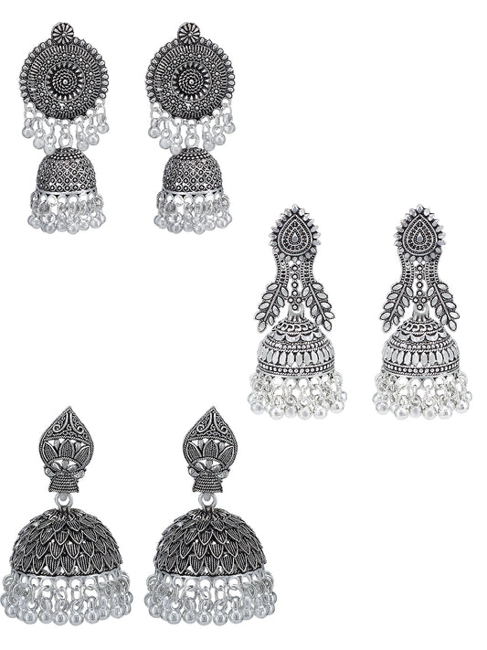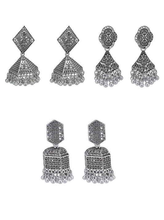 Pack Of 3 Traditional Silver Oxidised Jhumkas