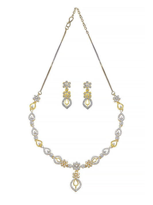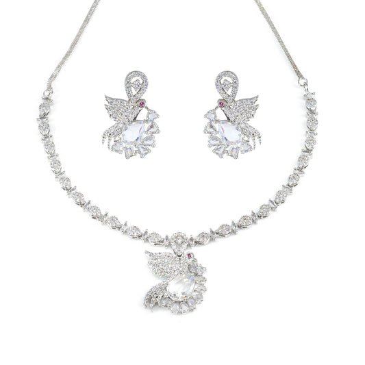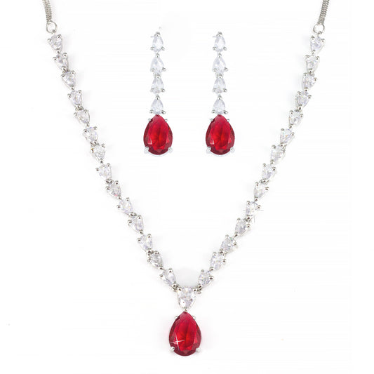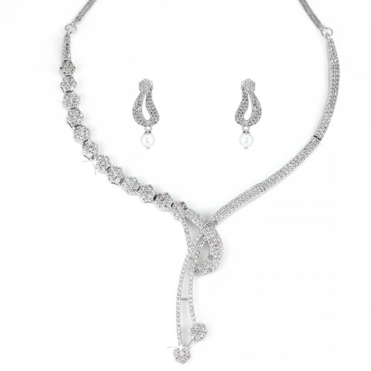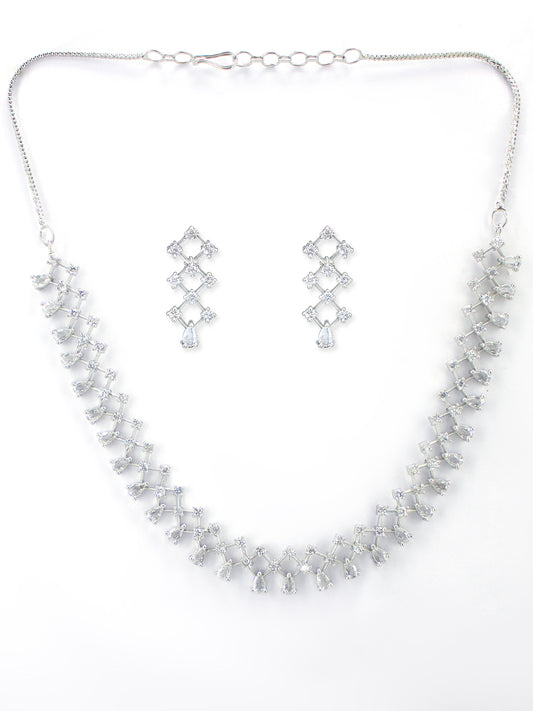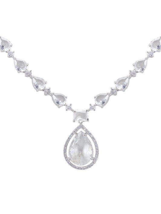 Rhodium Plated Teardrop American Diamond Jewellery Set