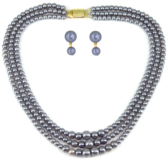 Ash Grey 3-Layered Faux-Pearl Jewellery Set