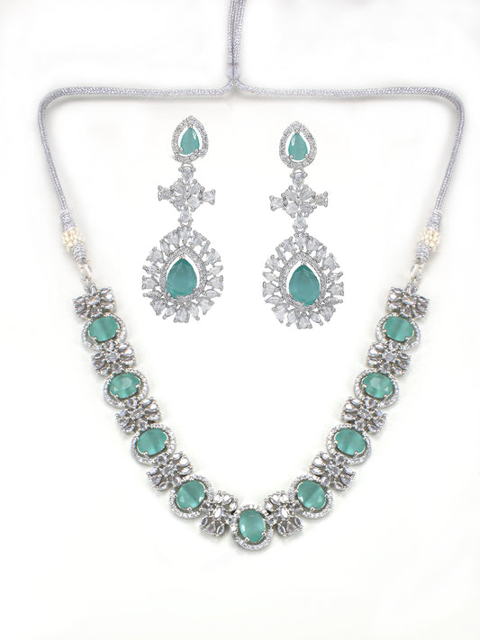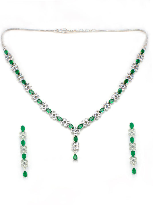 Rhodium-Plated Green American Diamond Studded Jewellery Set