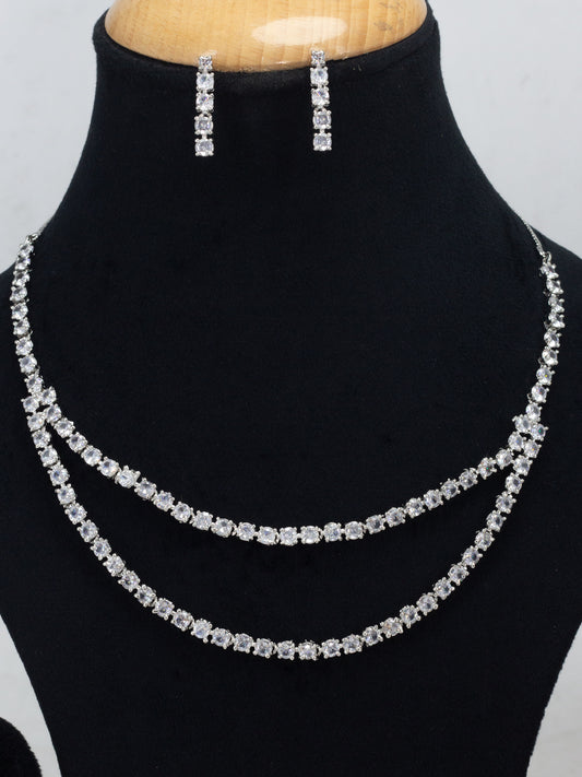 Rhodium-Plated American Diamond Studded Jewellery Set