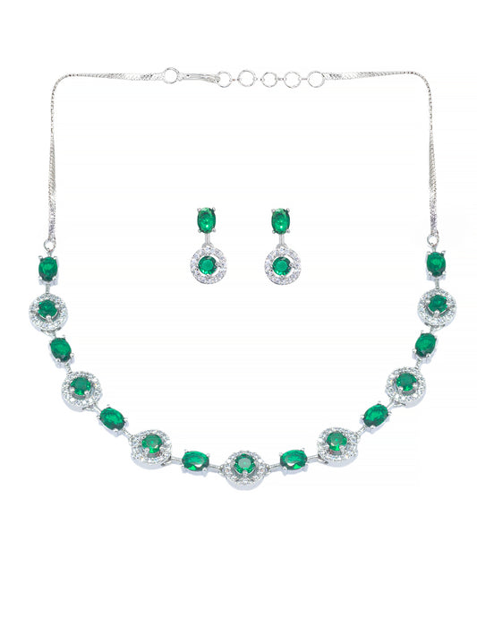 Rhodium Plated Green American Diamond Minimal Jewellery Set
