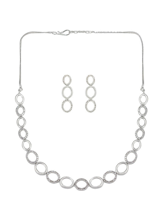 Rhodium Plated Oval Shaped American Diamond Jewellery Set