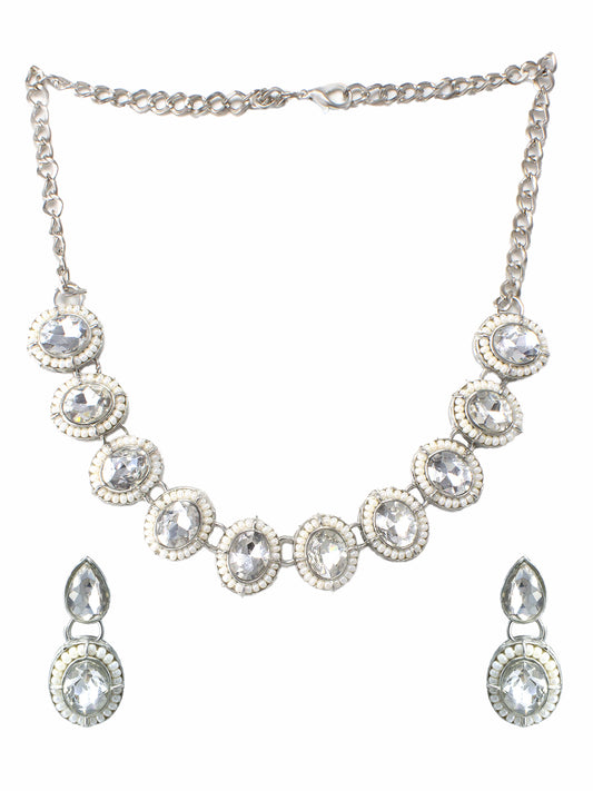 Rhodium-Plated Floral American Diamond Studded Jewellery Set