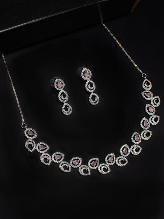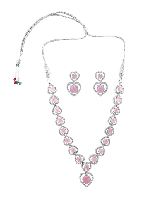 Rhodium-Plated Pink American Diamond Studded Jewellery Set