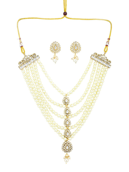 Gold-Plated Pearl-Studded & Kundan-Beaded Multi Layered Jewellery Set With Maangtika