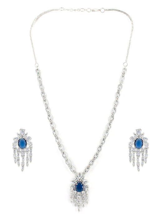 Rhodium Plated Blue American Dimaond Studded Jewellery Set